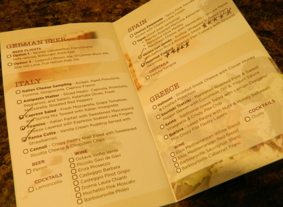 Busch Gardens has an excellent system for the purchasing of food and beverage items at the Food & Wine Festival. Kiosks decorated to resemble their respective country have signs that list all of the food and beverage items. You can also pick up a Food & Wine Festival Guide at any of the kiosks. This is a really cool little booklet with a map and descriptions of all of the items. Pretend it’s a passport and check off items as you try them. That’s what I did. It was fun. As you can see, I am liberal with my rating system. Pretty much everything got five stars in my book. After a while, I got tired of drawing all those stars. They still deserve them though.