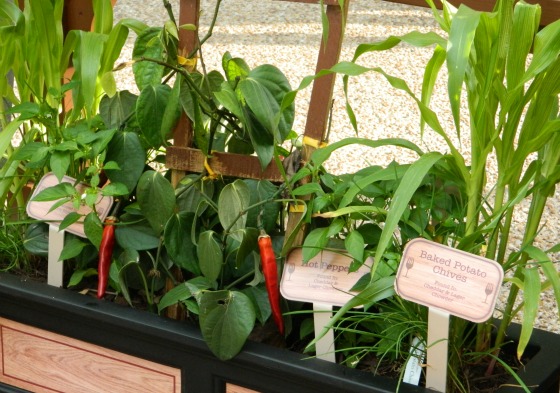 I am a detail person, and I have to comment on the small additions and decorative elements surrounding each country’s kiosk. There are potted plants such as herbs and vegetables at most of the locations. Markers list what each plant is as well as what dish it is used in. It’s really fun to see olives, peppers and lemons growing on the vine or branch. Also, check out the sign at Canada. It’s made of apples!