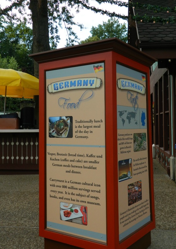 Each country also has a four-sided sign with various facts about the country and its cuisine.