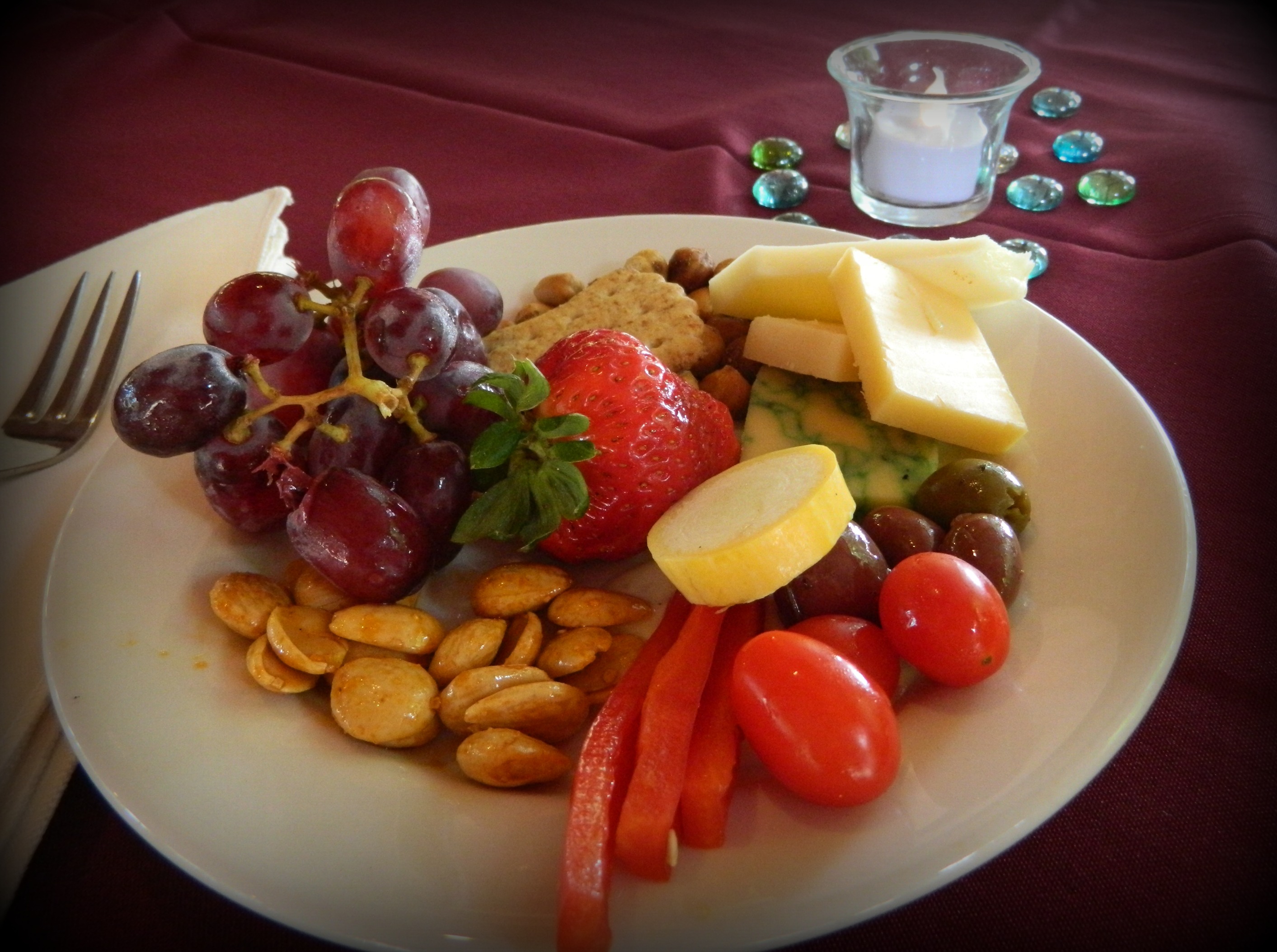 Okay, back to the food. There was a nice selection of cheese, crackers, fruit,vegetables and these amazing paprika-roasted Marcona almonds. They were so yummy. I could have eaten all of them. I knew there was way more to come so I practiced a little bit of restraint.