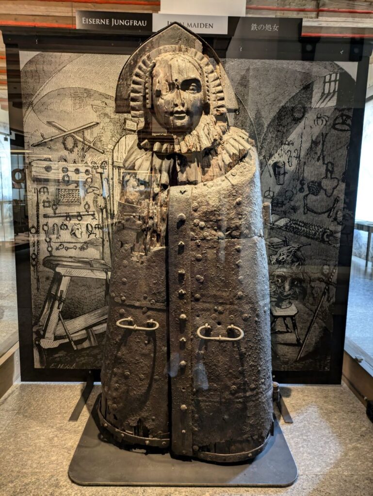 The tour starts in the cellar (how appropriate) with a fun collection of nail-ridden torture devices and “stretching” implements. As you make your way through the rest of the galleries, you’ll find law books, antique documents, shaming apparatuses, an iron maiden, judicial procedurals, executioner’s tools, art, folklore and other objects from the Medieval ages and the Holy Roman Empire.