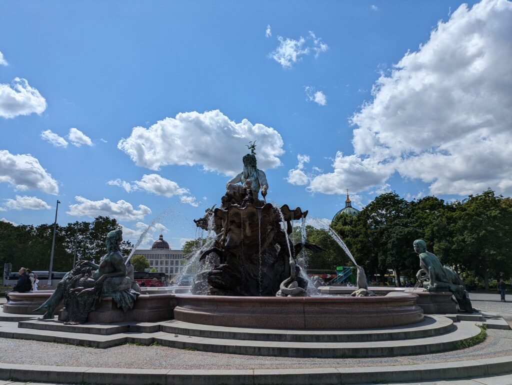 The Neptune Fountain features, you guessed it, Neptune. He’s surrounded by figures that represent the rivers Elbe, Rhine, Vistula and Oder. This ornate fountain stands at Alexanderplatz, a lovely square in Berlin’s Mitte District on Museum Island.