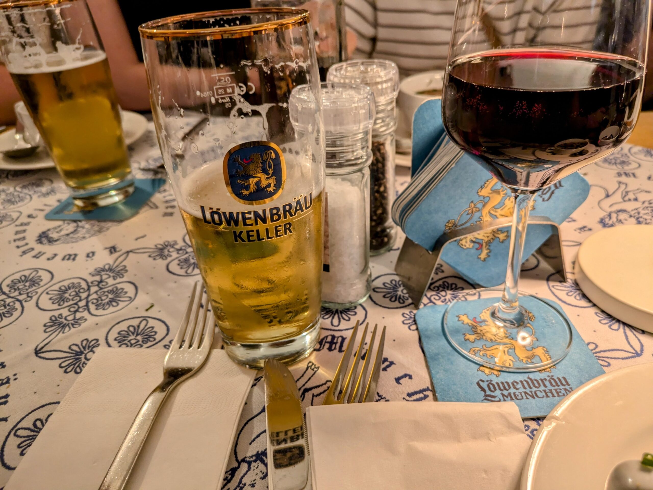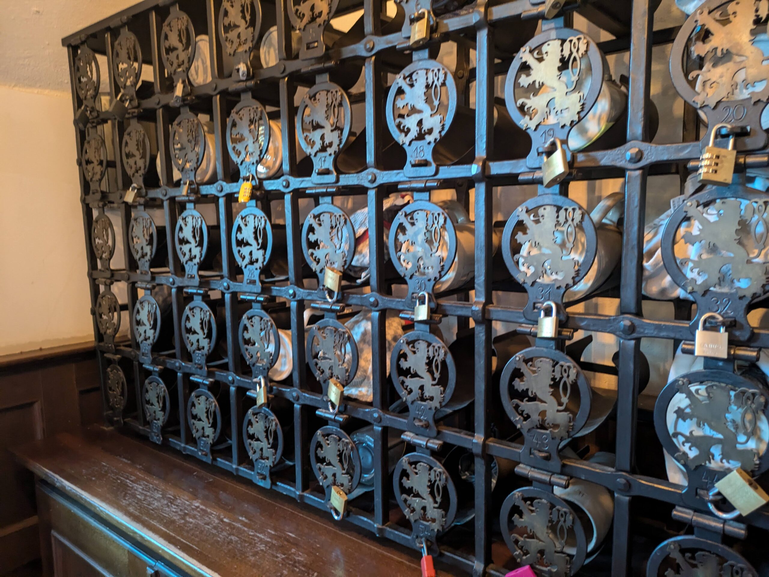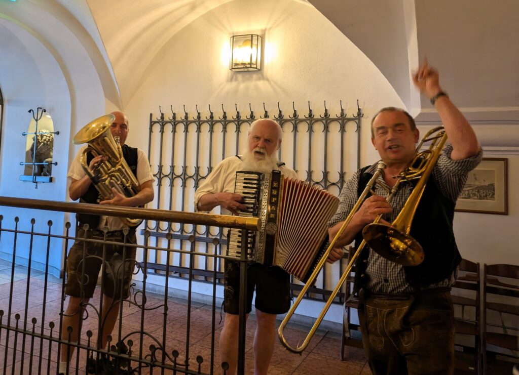 The Bavarian Brews and Bites dining experience, at Lowenbraukeller (Lion’s Brewery), is an optional excursion on the Globus tour. Enjoy an Oompa band (complete with an accordion, alpenhorn and a heartwarming rendition of “Take Me Home, Country Roads”) while dining on pancake soup (beef bouillon with pancake strips), apple strudel, Lowenbrau beer (very much NOT what you had in college) and chicken with rice. Check out the beer stein lockers. Locals can “rent” a locker to keep their own stein in.