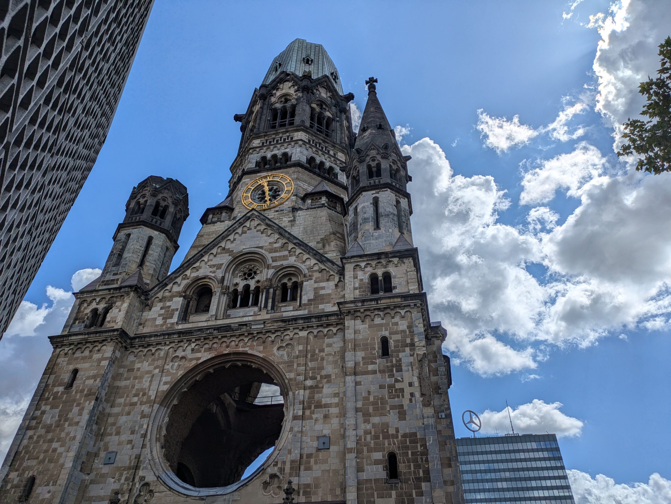 One of my favorites, the Kaiser Wilhelm Memorial, is located in the trendy Ku’damm neighborhood. The memorial was severely damaged in a bombing in 1943 and left as it was. It’s a surreal sight to see the remains (which are quite beautiful) in the middle of a modern shopping and business area. Next door to the memorial is the Kaiser Wilhelm Memorial Church.
