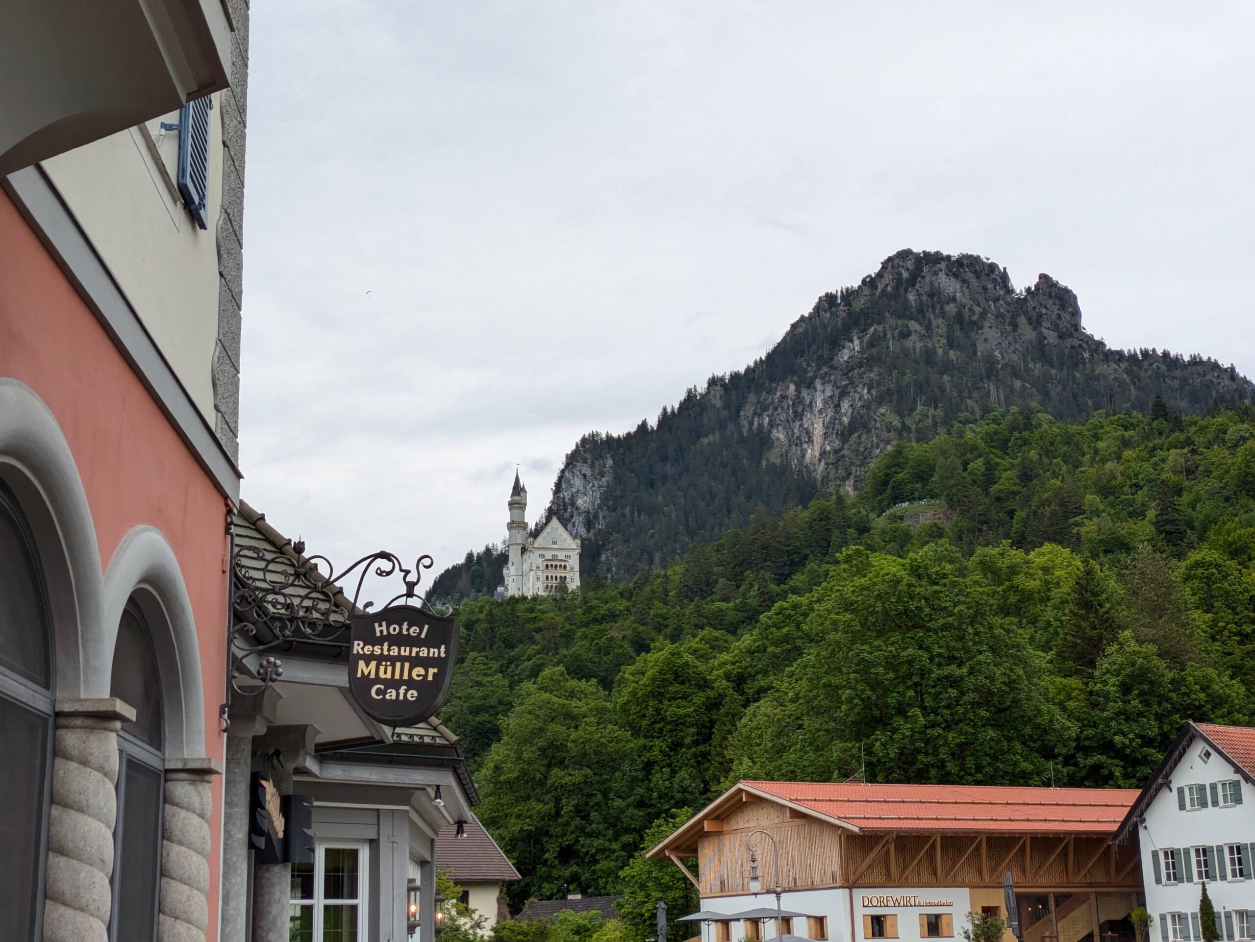 The Mueller Hotel’s restaurant offers the perfect view of Neuschwanstein as you dine. We chose beef stroganoff with potato cakes, rump steak and an elderberry spritz. For vegetarians, I recommend the spinach dumpling with tomato ragout. The hotel’s casual Bistro serves cappuccino, desserts, sandwiches, pretzels and hot dogs.