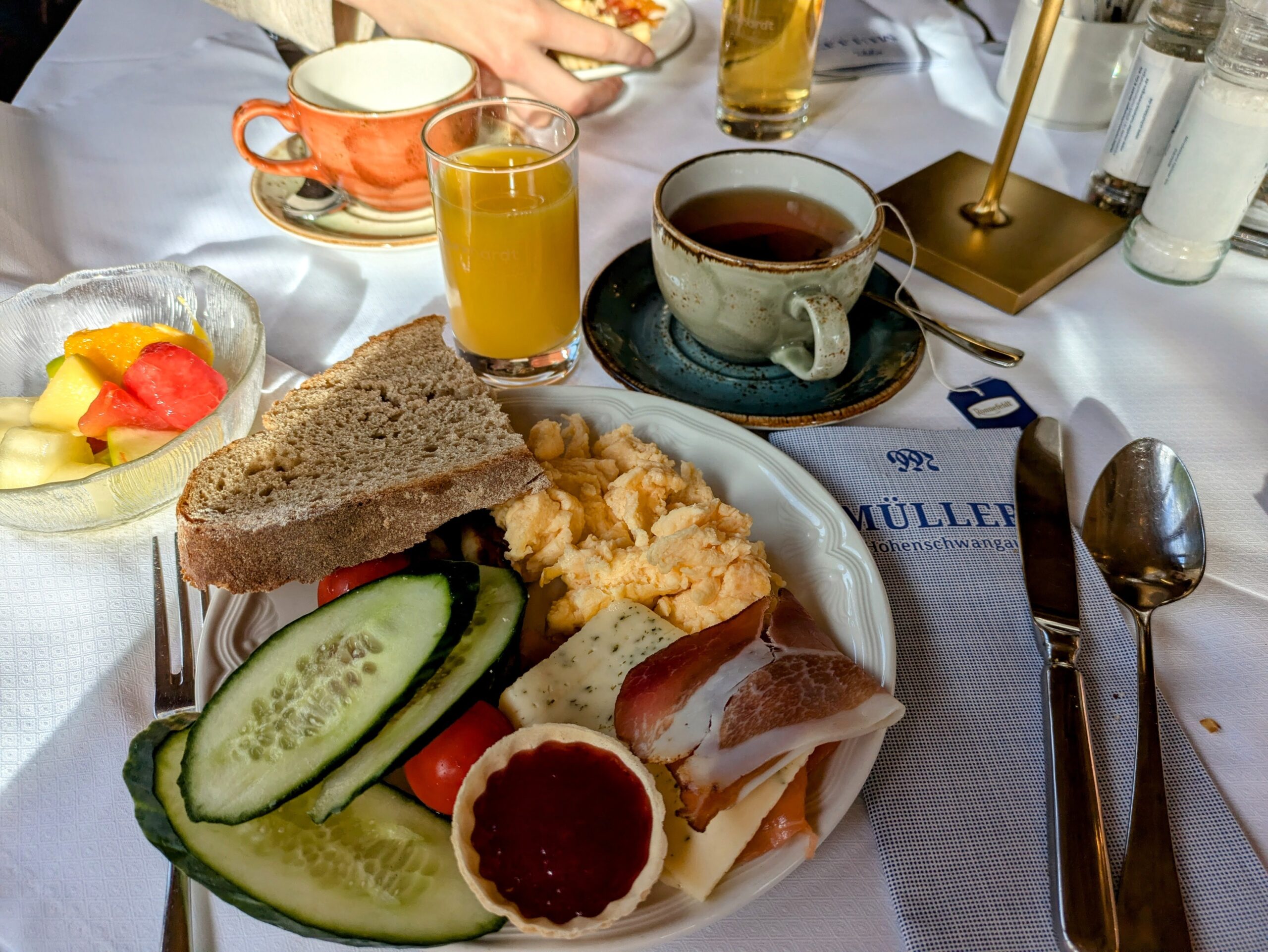 The German Vista tour is seven days. It includes two dinners (one at the start of the tour and one on the last night) and a daily breakfast buffet. The breakfast buffets were all at the hotels and more than plentiful enough to keep us full until lunch and beyond.