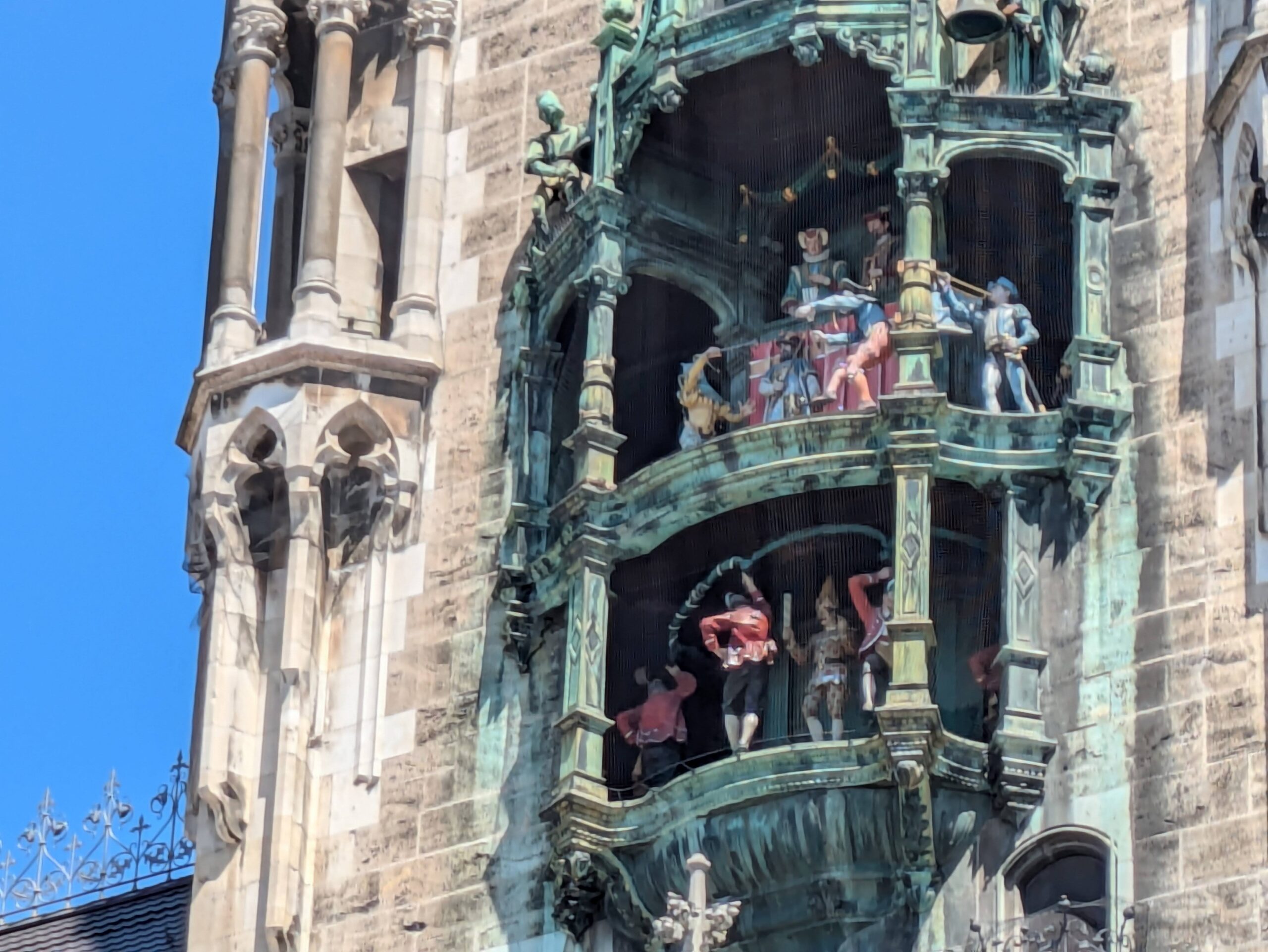 We ended our local tour by watching the historic Rathaus-Glockenspiel clock in Marienplatz Square, which has been the main square since 1158. Historic scenes from the 16th century, re-enacted by life-size characters, revolve around the clock at designated times. The show takes place daily at 11 a.m. and noon, and then again at 9 p.m. From March to October, it also chimes at 5 p.m.