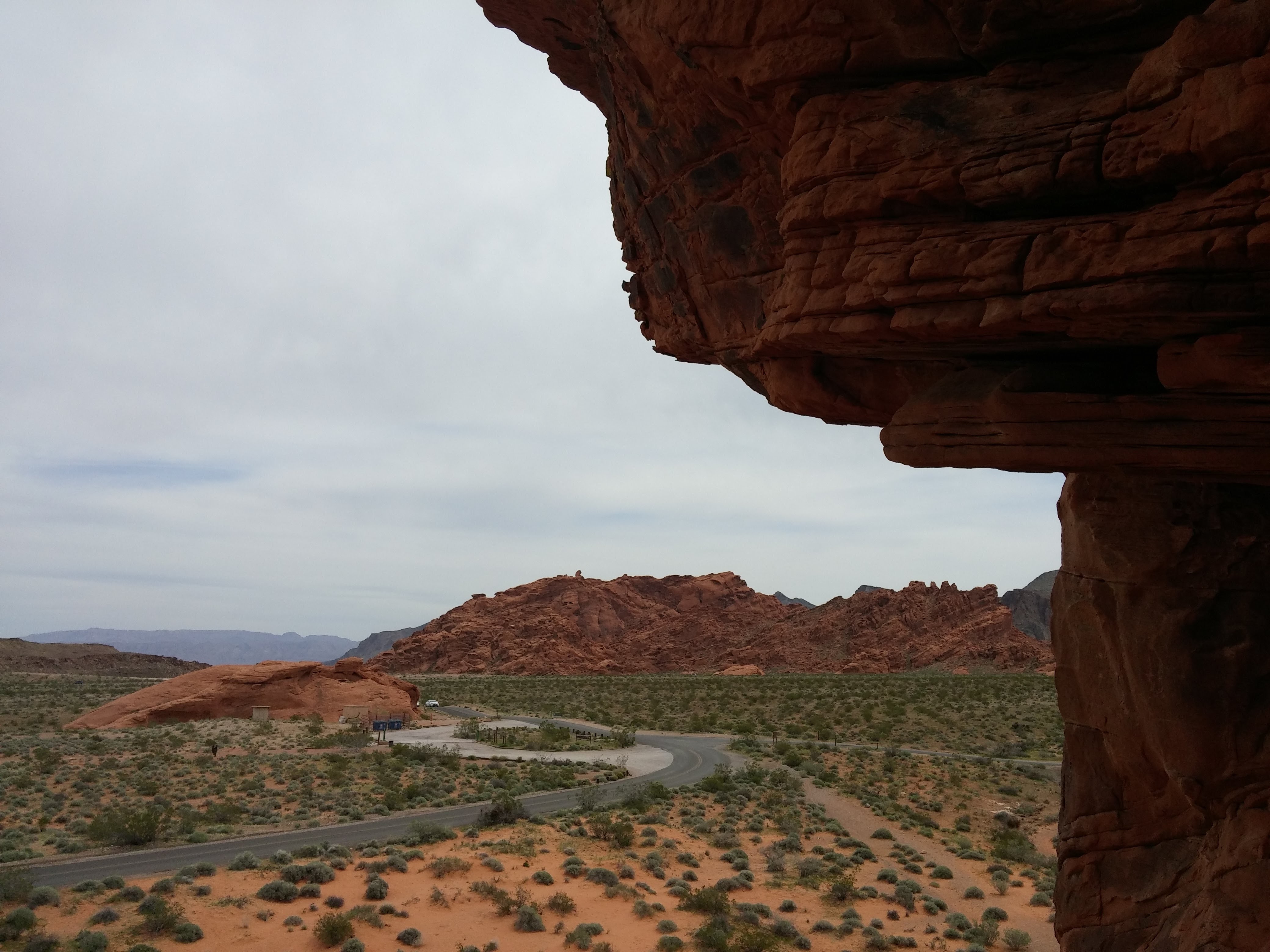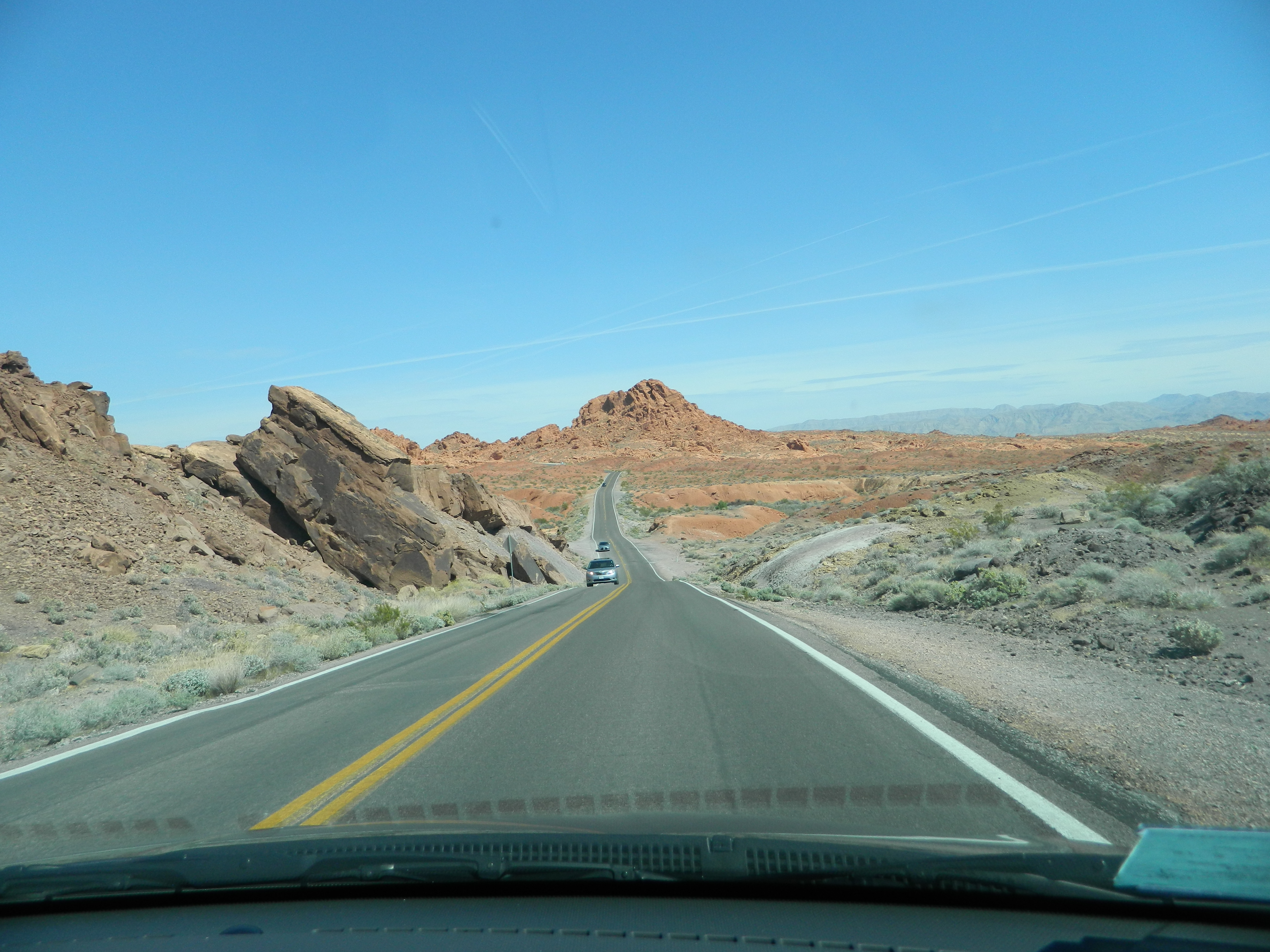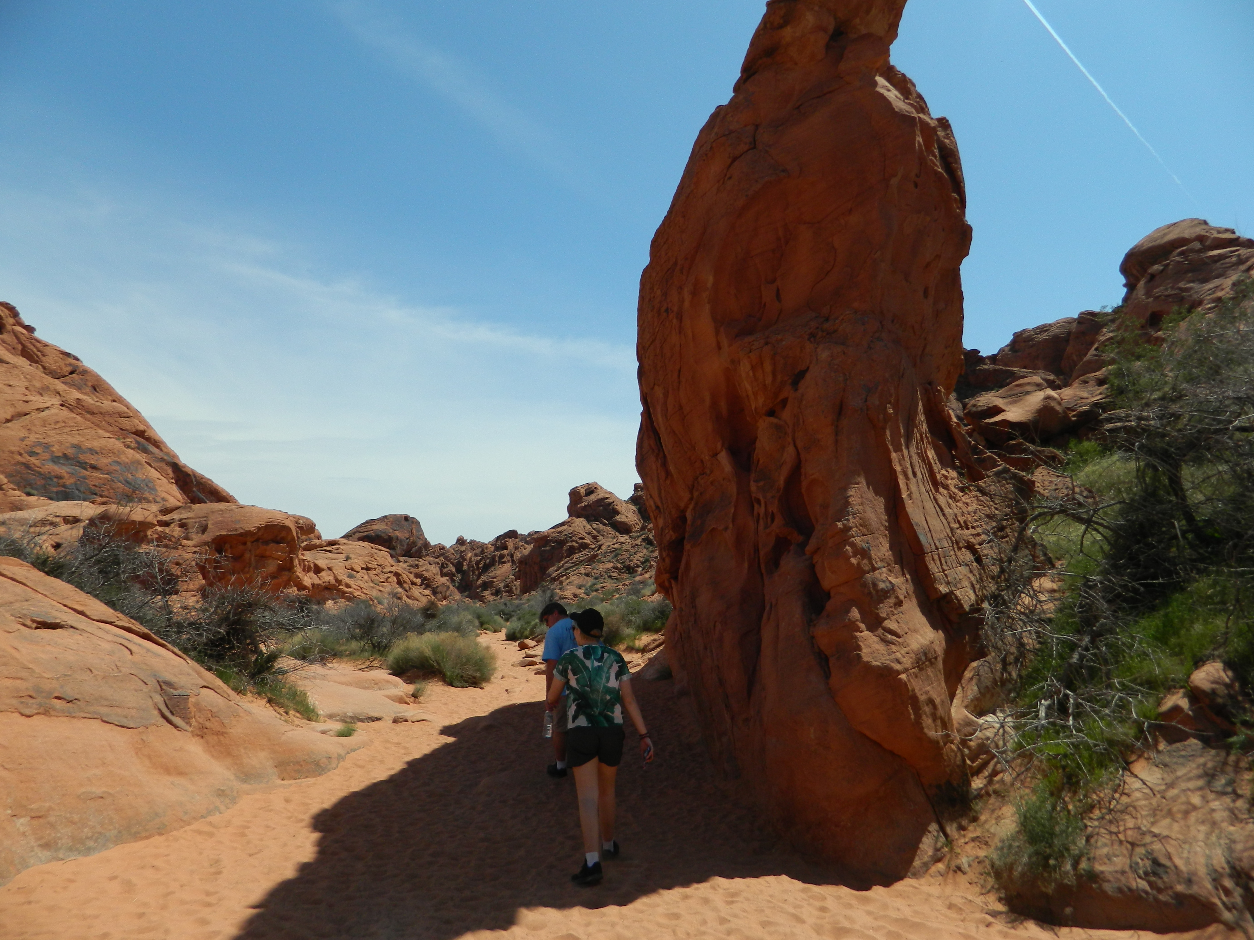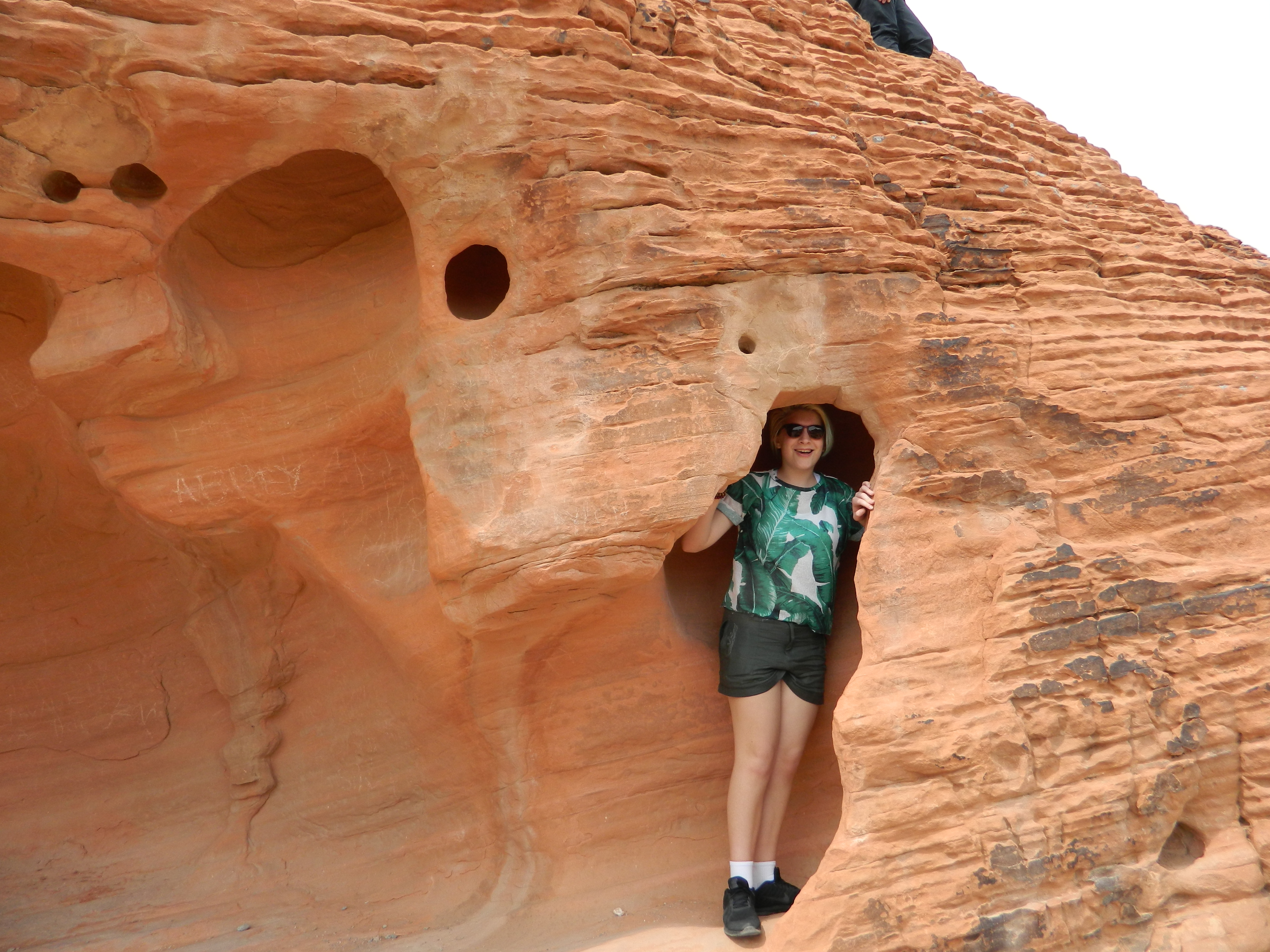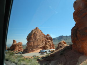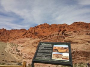 We were feeling adventurous, so we decided to hike to an area called Mouse’s Tank. When I say “adventurous,” don’t be too impressed. It’s about a 1/2 mile round trip from the parking area. Definitely remember to take some water with you, as the Nevada sun gets hot. You’ll be walking past petroglyphs and beautiful red rock formations. When you get back to the car, you’ll want to empty the sand from your shoes. It’s really soft and fine, and it easily found its way through the mesh in my Nikes.