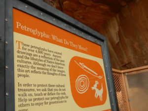 Easily the best part of the park for us was the petroglyphs. It was so cool to see those ancient carvings. Many of them are from the Basketmaker culture, dating to about 2,500 years ago, along with the Early Pueblo Culture. There are two spots in the park – Atlatl Rock and along the trail to Mouse’s Tank – where you can see some pretty awesome petroglyphs.