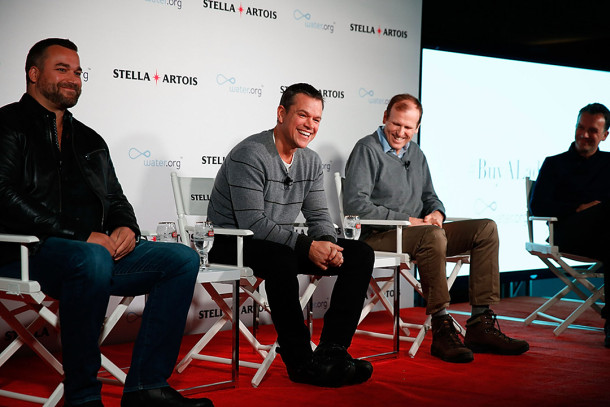 (L – R) Todd Allen, Global Vice President, Stella Artois, Water.org Co-Founders Matt Damon and Gary White, and Sean Bailey, Sundance Institute Board member