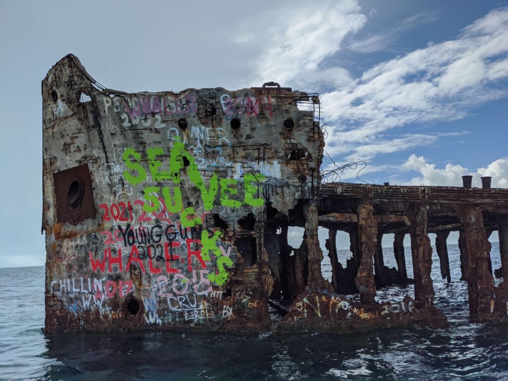 After snorkeling in and around the Sapona, we boarded the boat to the next stop at Triangle Rocks. This is the shark portion I mentioned earlier.